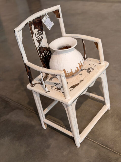 The chairs (white washed remnants of history) stayed with me. Old wooden forms reconfigured, repositioned, recontextualised. There was restraint there. A quiet intelligence. Furniture carries memory. It carries bodies. It carries absence. Ai understands that. When he intervenes, he is altering history in physical form. That tension between preservation and disruption felt sharp.